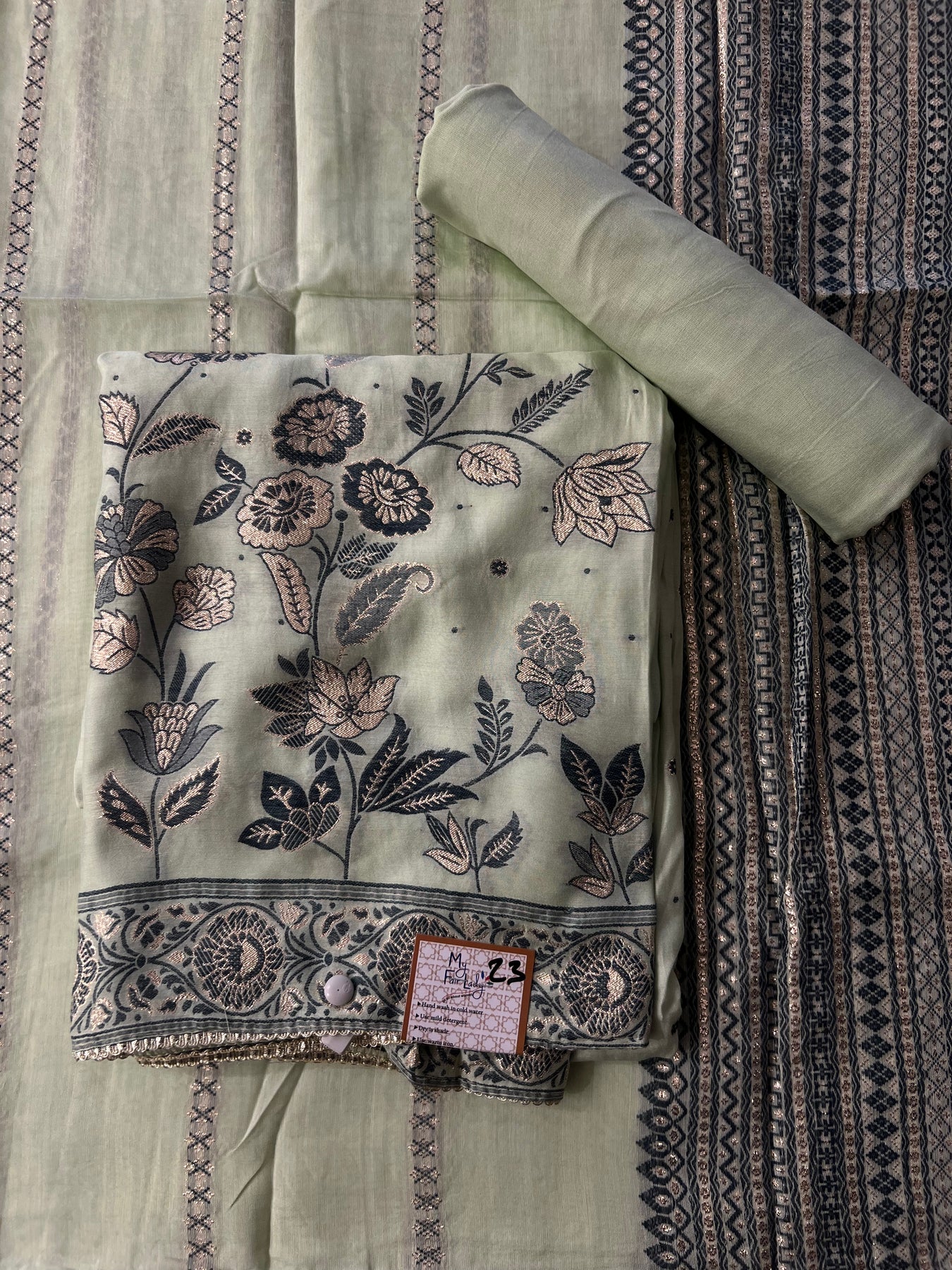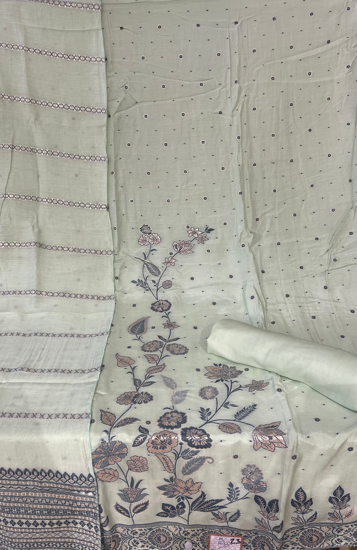 DESIGNER UNSTITCHED DRESS MATERIAL - BTFZ23/ LIGHT GREEN