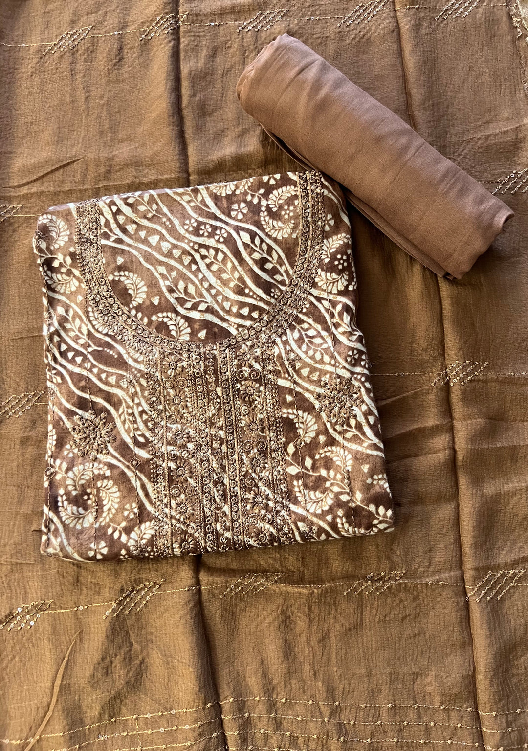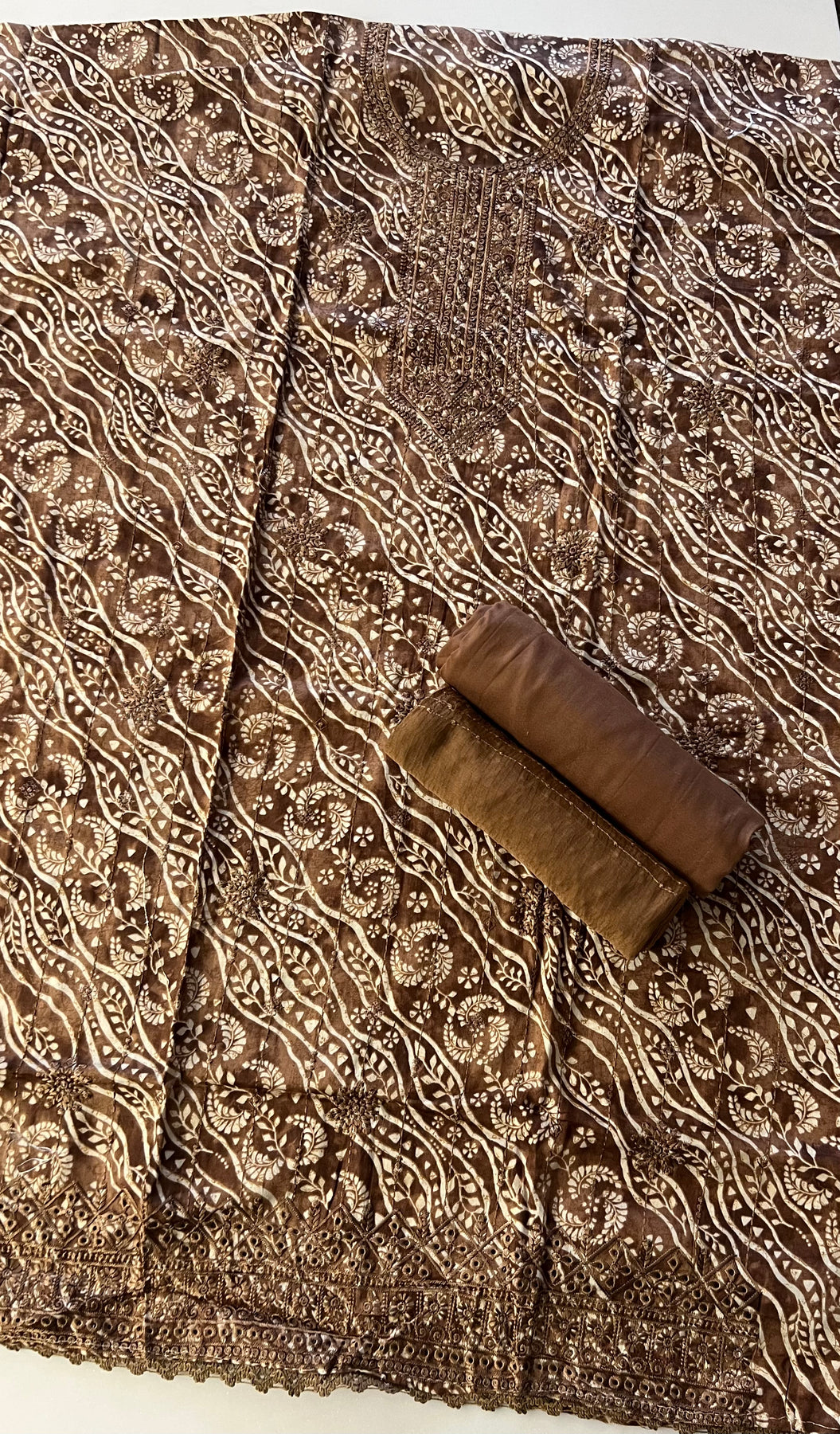 DESIGNER UNSTITCHED DRESS MATERIAL- IKMS10/ BROWN