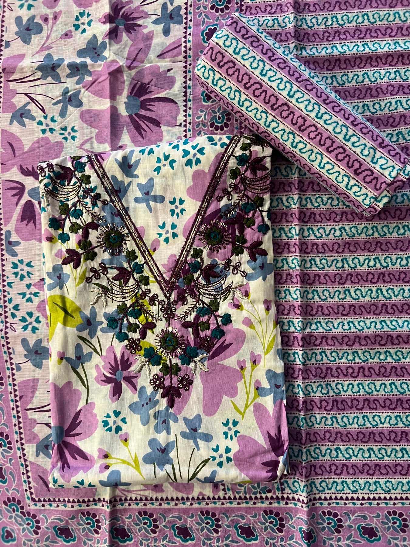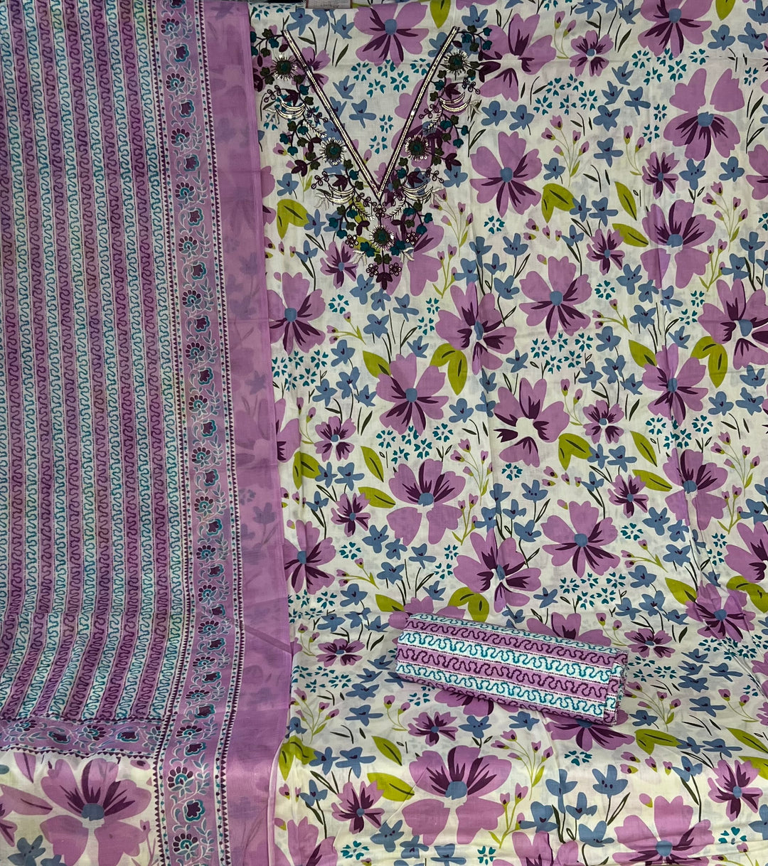 UNSTITCHED DRESS MATERIAL (COTTON) - IKJK04/VOILET